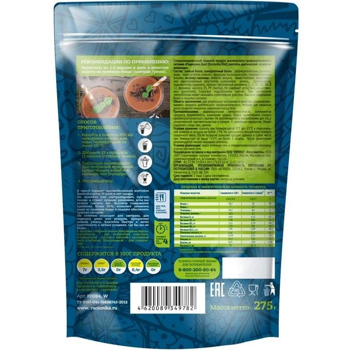 - РАЦИОНИКА ДИЕТ КОКТЕЙЛЬ ДИЕТИЧЕСКИЙ СО ВКУСОМ ШОКОЛАДА - Специализированный пищевой продукт диетического профилактического питания.