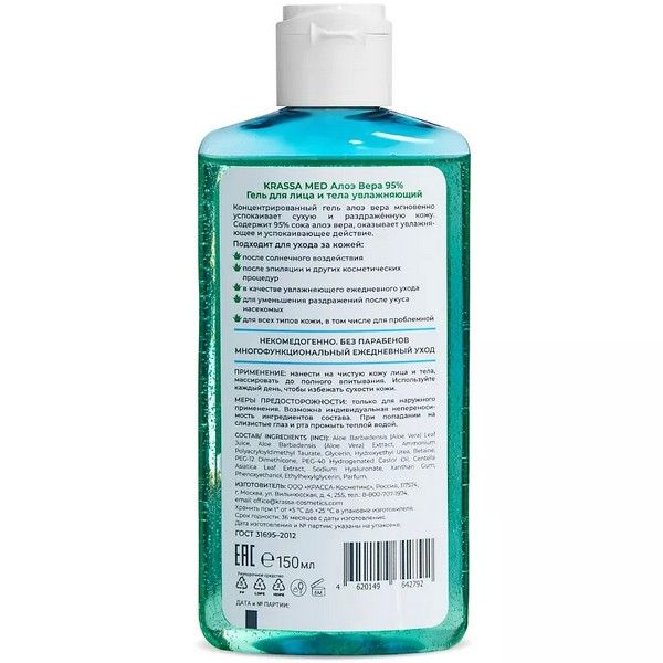 Гель KRASSA MED Алоэ Вера 95% увлажняющий д/лица и тела 150мл КРАССА-Косметикс/Россия