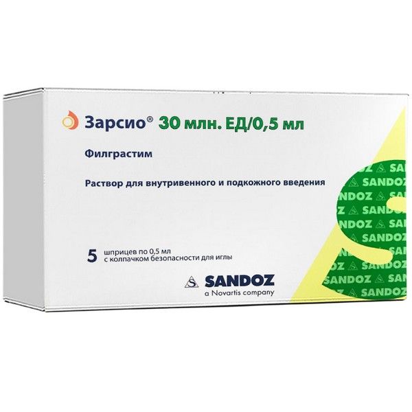 - Количество лейкоцитов в крови достигает или превышает 100 х 109/л менее чем у 5 % пациентов, получающих суточную дозу препарата Зарсио более 0,3 млн. ЕД/кг (0,0003 мг/кг) массы тела. Нет сведений о каких-либо побочных эффектах, непосредственно обусловленных развитием лейкоцитоза такой степени тяжести. Однако учитывая возможный риск, связанный с тяжелым лейкоцитозом, во время лечения препаратом Зарсио необходимо регулярно контролировать количество лейкоцитов. Если количество лейкоцитов превысит 50 х 109/л после достижения ожидаемого надира, следует немедленно отменить препарат. Если препарат Зарсио применяется