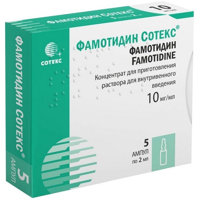 Фамотидин Сотекс амп.(конц. д/приг. р-ра д/в/в введ.) 10мг/мл 2мл №5 Сотекс/Россия