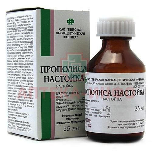При хронических гнойных отитах после тщательной очистки от гноя в ухо вводят тампон, пропитанный настойкой прополиса, на 1-2 минуты 2-3 раза в день или закапывают по 1-2 капли в ухо 3-4 раза в день.