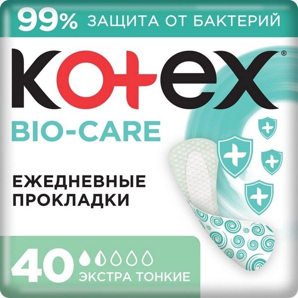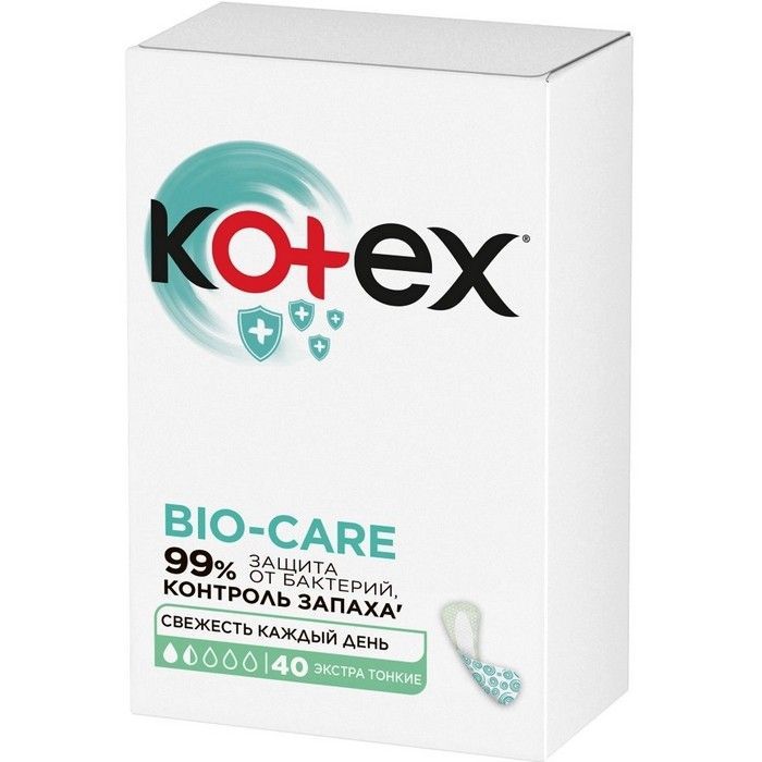 - Ежедневные прокладки Kotex® Bio-Care Экстра тонкие созданы специально для потребностей современных девушек, которые хотят быть уверены в своей защите и отсутствии неприятного запаха.