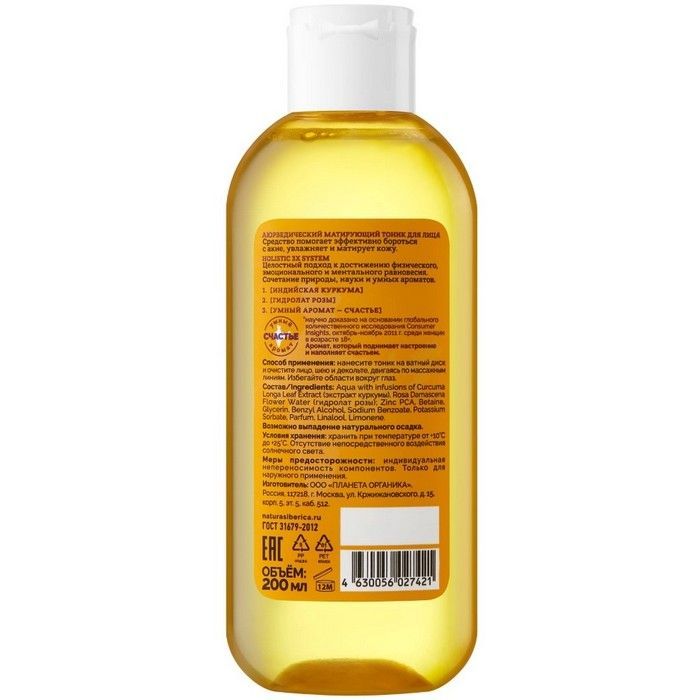 Planeta Organica тоник д/лица матирующий аюрведический 200мл Планета Органика/Россия