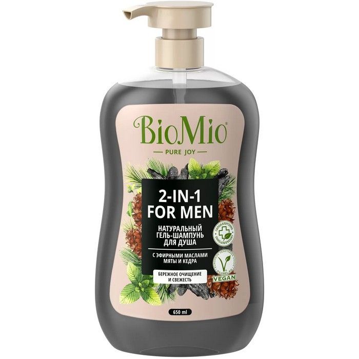- BIOMIO BIO SHOWER BODY&HAIR GEL 2-IN-1 ГЕЛЬ-ШАМПУНЬ Д/ДУША НАТУР С ЭФИРНЫМИ МАСЛАМИ МЯТЫ И КЕДРА Д/МУЖЧИН.