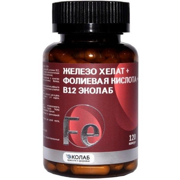 Железа хелат+Фолиевая кислота+B12 Эколаб капс. №120 Эколаб