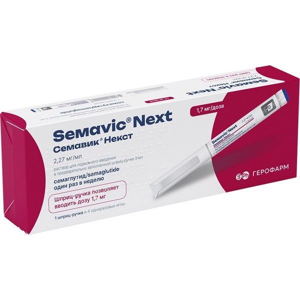 Семавик Некст шприц-ручка(р-р д/подкожн. введ.) 1,7мг/доза 3мл №1 ( в комплекте 4 иглы) Герофарм