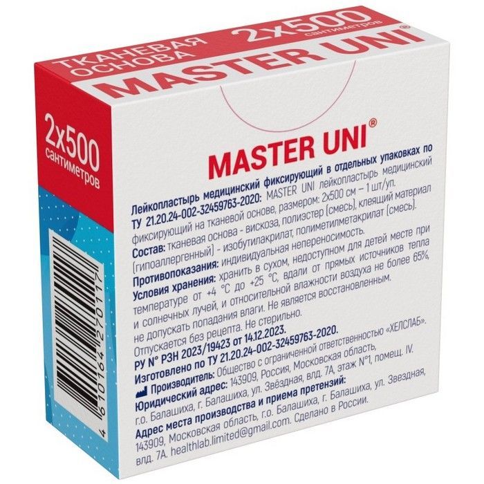 - ЛЕЙКОПЛАСТЫРЬ MASTER UNI МЕДИЦИНСКИЙ ФИКСИРУЮЩИЙ НА ТКАНЕВОЙ ОСНОВЕ - эластичный дышащий лейкопластырь для чувствительной кожи.
