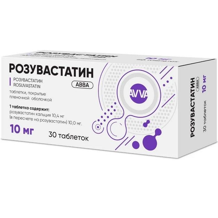 Розувастатин АВВА таб. п/пл. об. 10мг №30 АВВА РУС/Россия