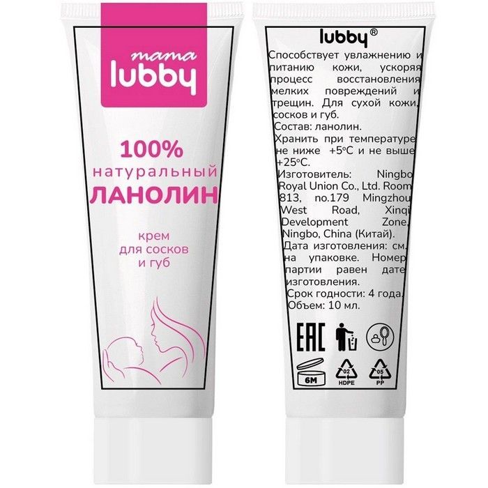 Крем MAMA LUBBY ланолиновый д/сух. кожи губ и сосков 10мл Ningbo Royal Union Co/Китай