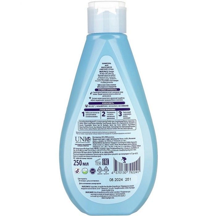 - Специальные особенности: Гипоаллергенно. Без SLS/SLES. Без силиконов.