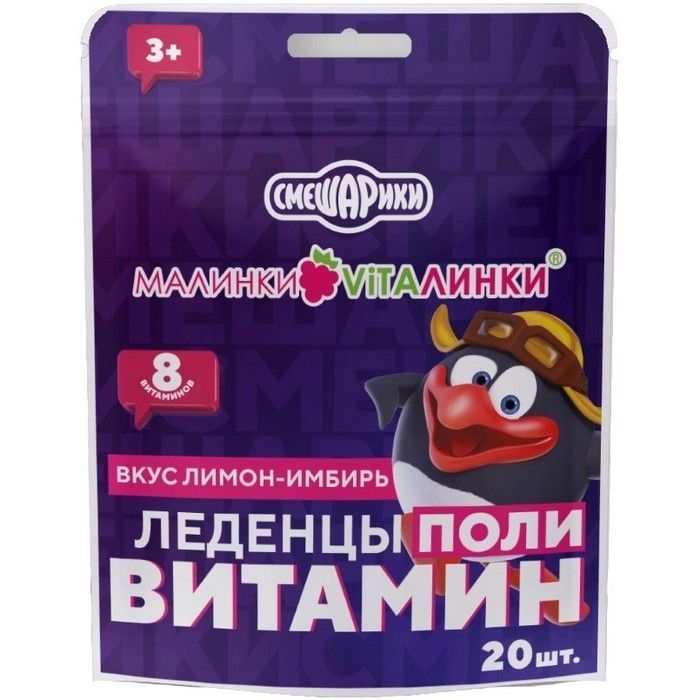 Леденцы Малинки-Виталинки поливитамин со вкусом лимон/имбирь №20 Плантико/Россия