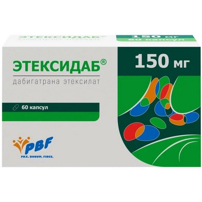 Всегда принимайте препарат в полном соответствии с рекомендациями лечащего врача. При появлении сомнений посоветуйтесь с лечащим врачом. Рекомендованная дозаПрофилактика инсульта, системных тромбоэмболий и снижение сердечно-сосудистой смертности у взрослых пациентов (в возрасте от 18 лет) с неклапанной фибрилляцией предсердий и одним или более факторами риска; лечение и профилактика рецидивов острого тромбоза глубоких вен (ТГВ) и/или тромбоэмболии легочной артерии (ТЭЛА) и профилактика смертельных исходов, вызываемых этими заболеваниями у взрослых пациентов (в возрасте от 18 лет)Рекомендуемая доза составляет 300 мг (одна капсула 150 мг 2 раза в сутки). Если Вам 80 лет и более, рекомендуемая доза составляет 220 мг (одна капсула 110 мг 2 раза в сутки). Если Вы принимаете препараты, содержащие верапамил, Вам следует применять препарат ЭТЕКСИДАБ® в уменьшенной дозе 220 мг (1 капсула 110 мг 2 раза в сутки), поскольку может быть повышен риск развития кровотечения. Если у Вас потенциально повышенный риск развития кровотечения, врач может принять решение о назначении дозы 220 мг (одна капсула 110 мг 2 раза в сутки). Вы можете продолжать прием данного препарата, если необходимо восстановить сердечный ритм при помощи кардиоверсии. Принимайте препарат ЭТЕКСИДАБ® в соответствии с указаниями врача. Если в ходе чрескожного коронарного вмешательства со стентированием в кровеносном сосуде было установлено медицинское устройство (стент) для сохранения его открытым, Вы можете принимать препарат ЭТЕКСИДАБ® после принятия врачом решения о достижении нормального контроля свертываемости крови. Принимайте препарат ЭТЕКСИДАБ® в соответствии с указаниями врача. Путь и (или) способ введенияПрепарат ЭТЕКСИДАБ® можно принимать независимо от времени приема пищи. Капсулу следует проглатывать целиком, запивая стаканом воды для обеспечения прохождения препарата в желудок. Не ломайте, не разжевывайте и не извлекайте пеллеты из капсулы, поскольку это может повысить риск развития кровотечения. Препарат ЭТЕКСИДАБ® выпускается в капсулах 75 мг, 110 мг и 150 мг. Изменение антикоагулянтной терапииБез специального указания Вашего врача не меняйте препарат антикоагулянтной терапии. Если Вы приняли препарат ЭТЕКСИДАБ® больше, чем следовалоПрием слишком большого количества данного препарата увеличивает риск кровотечения. Немедленно обратитесь к Вашему врачу, если Вы приняли слишком много капсул. Доступны специальные варианты лечения. Если Вы забыли принять препарат ЭТЕКСИДАБ®Забытую дозу можно принять до того момента, когда останется 6 часов до приема следующей запланированной дозы. Если до приема следующей запланированной дозы остается менее 6 часов, пропущенную дозу принимать не следует. Не принимайте двойную дозу с целью компенсации пропущенной дозы. Если Вы прекратили прием препарата ЭТЕКСИДАБ®Препарат ЭТЕКСИДАБ® необходимо принимать так, как это Вам прописал врач. Не прекращайте прием препарата, не посоветовавшись с Вашим врачом, потому что риск развития тромбоза может быть выше, если Вы прекратите лечение слишком рано. Обратитесь ко врачу, если Вы испытываете расстройство желудка после приема препарата ЭТЕКСИДАБ®. Если у Вас есть дополнительные вопросы при приеме данного препарата, обратитесь к Вашему врачу.