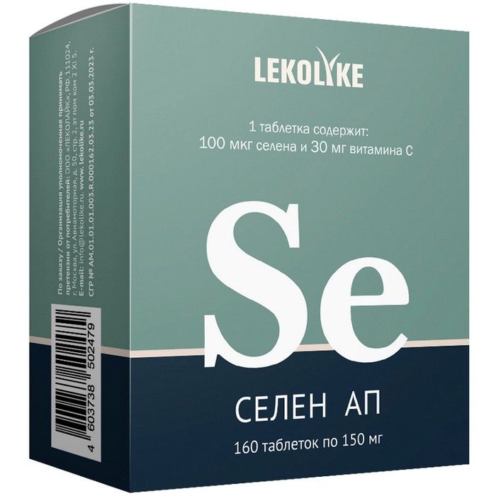 - LEKOLIKE СЕЛЕН АП - Биологически активная добавка (БАД) к пище - создан для защиты организма от свободных радикалов. Активируя важнейшие звенья антиоксидантной системы, СЕЛЕН АП предотвращает цепную реакцию и образование новых агрессивных молекул, нейтрализует их негативное воздействие на человека.