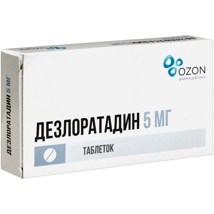 - Действующее вещество: дезлоратадин - 5,000 мг.