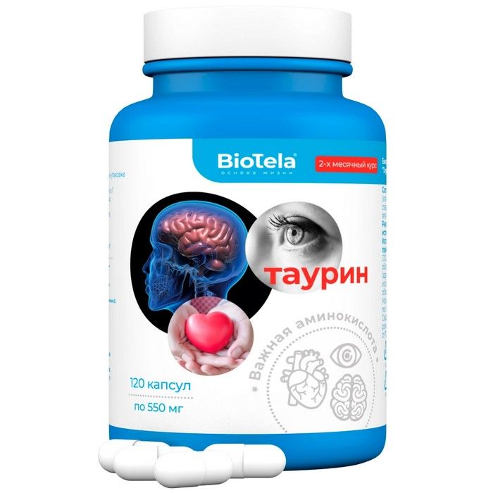 - Таурин BioTela Biotela 120 капсул, курс на 2 месяца.