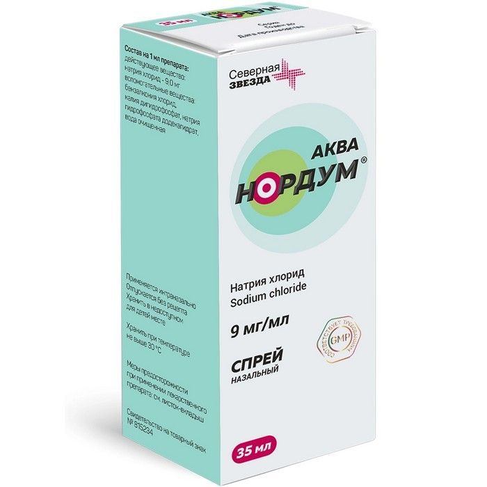 - Лекарственный препарат АКВА НОРДУМ® содержит действующее вещество натрия хлорид. Раствор натрия хлорида для интраназального применения относится к группе препаратов для лечения заболеваний носа и применяется при сухости слизистой оболочки носа.