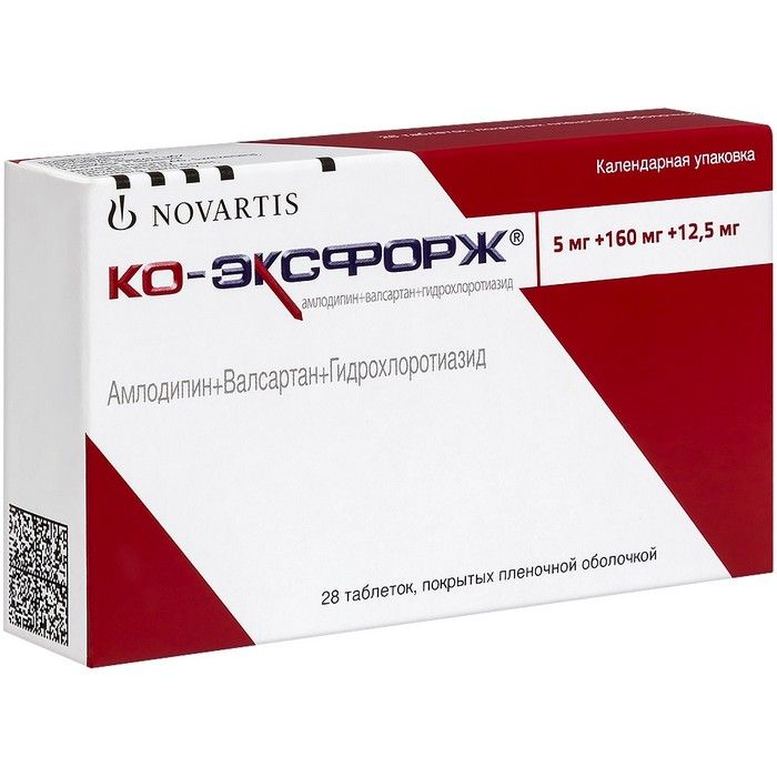 Ко-Эксфорж таб. п/пл. об. 5мг + 160мг + 12,5мг №28 Novartis Pharma S.p.A./Италия