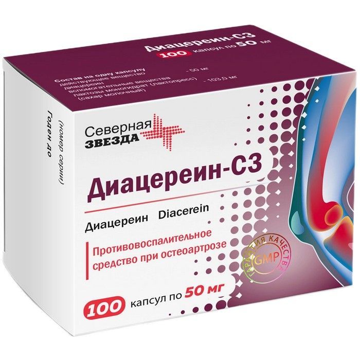 Диацереин-СЗ капс. 50мг №100 Северная звезда/Россия