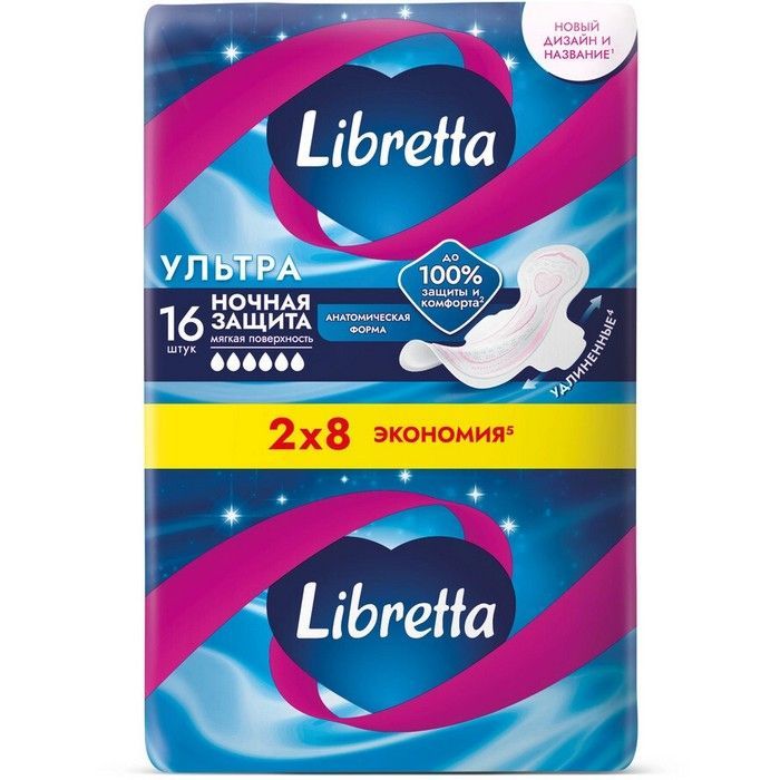 Libretta прокладки ультратонкие ультра ночные - прокладки с мягкой поверхностью и анатомической формой обеспечивают до 100% защиты и комфорта, чтобы ты чувствовала себя в гармонии со своим телом в "эти дни".