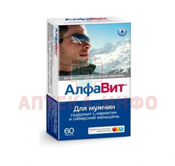 АЛФАВИТ Для мужчин - витаминно-минеральный комплекс для поддержания здоровья, повышения работоспособности и жизненного тонуса у мужчин. Комплекс создан специально для мужчин, которые внимательно относятся к своему здоровью. Компоненты АЛФАВИТА Для мужчин повышают энергетический тонус, укрепляют иммунную и нервную системы, участвуют в профилактике сердечно-сосудистых заболеваний, поддерживают нормальную работу мужской половой системы.