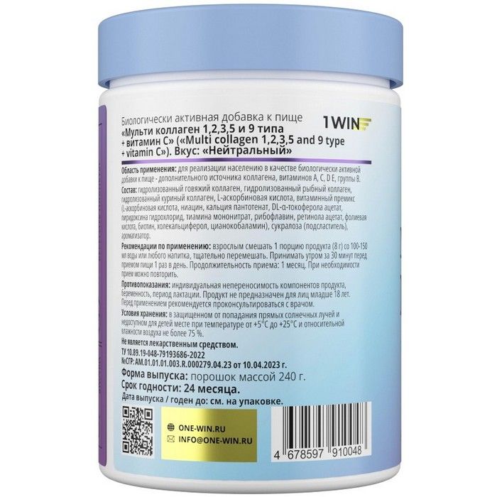 - 1WIN МУЛЬТИ КОЛЛАГЕН 1 2 3 5 И 9 ТИПА+ВИТАМИН С ПОРОШОК НЕЙТРАЛЬНЫЙ ВКУС