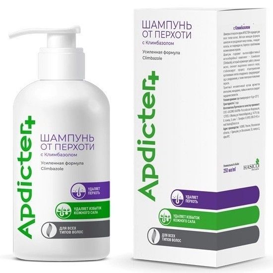 - Шампунь от перхоти с Климбазолом серии APDICTER+ подходит для всех типов волос.