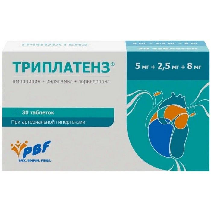 - Препарат ТРИПЛАТЕНЗ® представляет собой комбинацию трех действующих веществ: периндоприла, индапамида и амлодипина. Это антигипертензивное средство, которое применяется для лечения высокого артериального давления (артериальной гипертензии). Пациенты, уже принимающие периндоприл/индапамид в виде комбинации с фиксированной дозой и амлодипин в виде отдельных таблеток, могут вместо этого получить одну таблетку ТРИПЛАТЕНЗ®, содержащую три активных ингредиента в той же дозе.