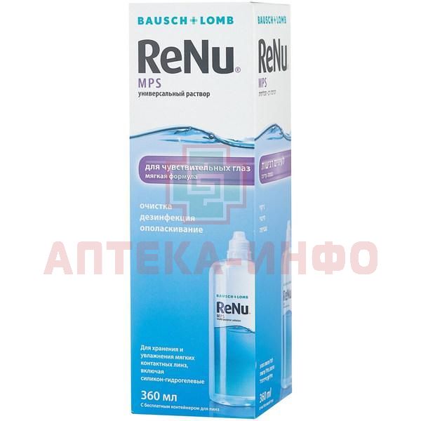 Раствор для контактных линз RENU MPS 360мл д/чувств. глаз + контейнер Bausch & Lomb Incorporated/Италия
