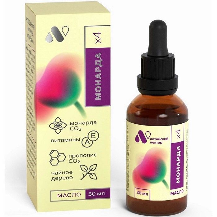 МонардаХ4 - обогащённое косметическое масло для ухода за кожей и ногтевыми пластинами. Помимо натурального жирного масла монарды дудчатой содержит СО2 экстракты монарды и пчелиного прополиса, масло чайного дерева, витамины А и Е.Подходит как для ежедневного домашнего использования, так и для проведения салонных процедур.Масло для ногтей и кутикулы «МонардаХ4» помогает сделать кожу более увлажнённой, гладкой и здоровой, особенно при склонности к воспалениям, раздражениям и шелушениям.Монарда содержит эфирные масла и витамины, которые улучшают структуру ногтевой пластины, снижая ломкость и предотвращая расслаивание. Это особенно актуально для тонких, мягких, ослабленных ногтей.СО2 экстракт прополиса - усиливает кожный барьер, предотвращает возникновение воспалений, сухости и шелушений, способствует росту здорового ногтя.Витамин А - стимулирует процесс естественного обновления ногтевых пластин, делает кожу более свежей, гладкой и ухоженной.Витамин Е - увлажняет и питает кожу, избавляет от сухости, стянутости и шелушений, предотвращает возникновение микротрещин.Эфирное масло чайного дерева - снимает зуд, покраснения и другие признаки раздражения, профилактирует развитие кожных воспалений, способствует сохранению здорового вида ногтей.