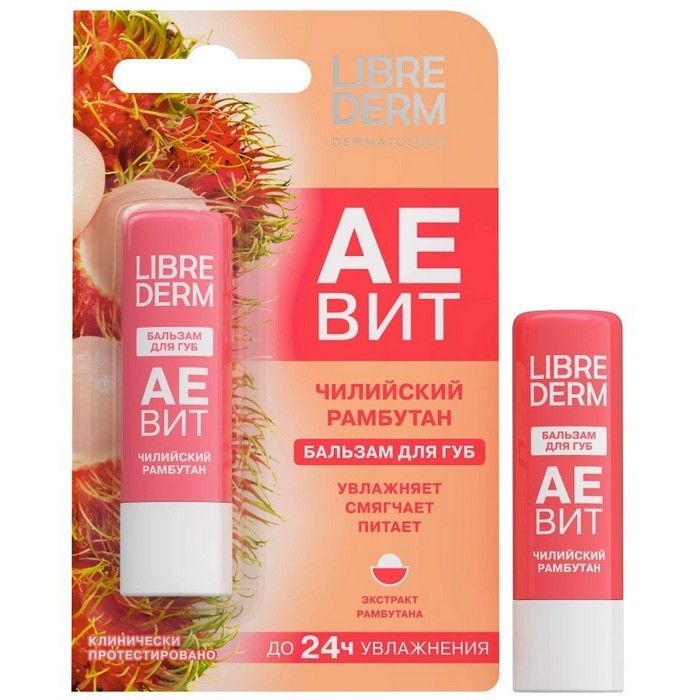 ЛИБРИДЕРМ АЕВИТ БАЛЬЗАМ ДЛЯ ГУБ ЧИЛИЙСКИЙ РАМБУТАН - с натуральными маслами и витаминамиВнешний вид и свойства: Легкая текстура без липкости.