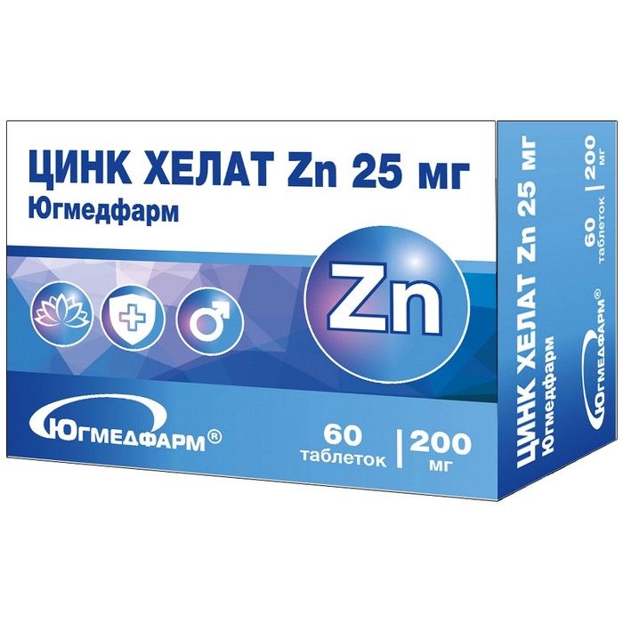 Цинк хелат 25мг таб. 200мг №60 Югмедфарм/Россия