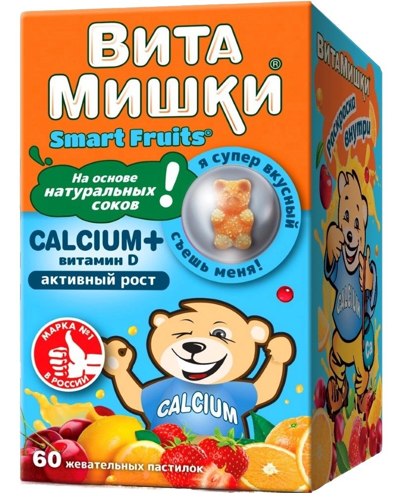 - ВитаМишки® Calcium + витамин D - сбалансированный витаминно-минеральный комплекс в виде вкусных мармеладных пастилок-мишек с натуральными фруктовыми и овощными экстрактами для детей с 3-х лет.