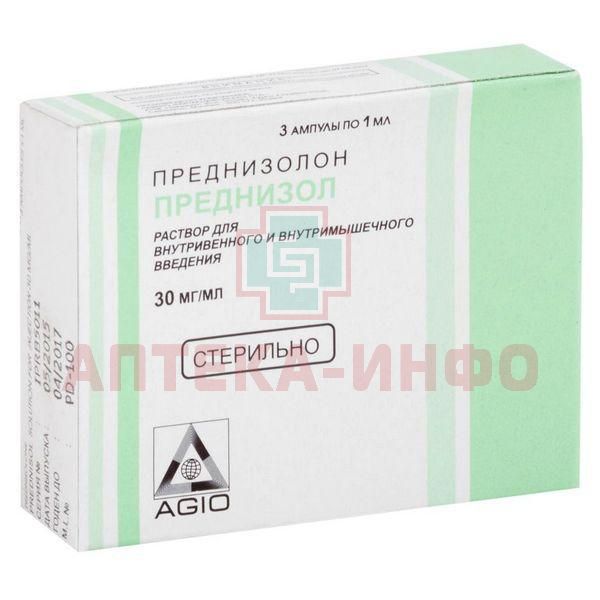 Преднизол амп.(р-р д/в/в и в/м введ.) 30мг/мл 1мл №3 уп.конт. АЛ/ПВХ (поддоны) - пач.карт. Agio Pharmaceuticals/Индия