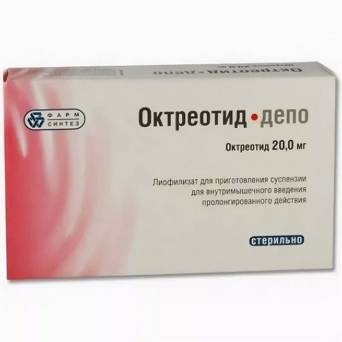 - Октреотид-депо® представляет собой лекарственную форму октреотида длительного действия для в/м введения, обеспечивающую поддержание стабильных терапевтических концентраций октреотида в крови в течение 4 недель.