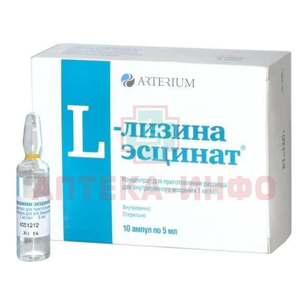 Активное вещество: L-лизина эсцината, в пересчете на 100% вещество - 1,0 мг.