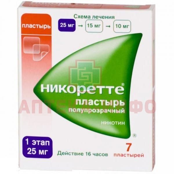 Никоретте пластырь ТДТС 25мг/16ч (саше) №7 полупрозрачн. LTS Lohmann Therapie-Systeme/Германия/McNeil AB/Швеция