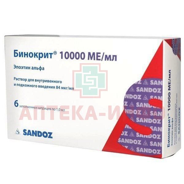 Бинокрит шприц (р-р д/в/в и подкожн. введ.) 84мкг/мл (10000МЕ/1мл) 1мл №6 IDT Biologika GmbH/Германия