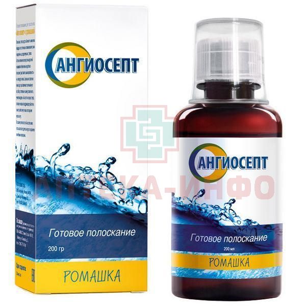 Ангиосепт современной средство, обладающие антисептическим, противовоспалительным и дезодорирующим действием, применяется при инфекционно-воспалительных заболеваниях горла, а также слизистой оболочки ротовой полости. Рекомендовано как готовый к применению раствор для полоскания. Препарат на основе экстракта ромашки аптечной применяется с профилактическими и гигиеническими целями.