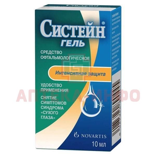 Систейн Гель средство офтальмологическое - стерильный раствор, содержащий полиэтиленгликоль 400 4,0 мг/мл, пропиленгликоль 3,0 мг/мл, гидроксипропилгуар 7,0 мг/мл, сорбитол 14,0 мг/мл, аминометилпропанол 5,7 мг/мл, борную кислоту 3,0 мг/мл, калия хлорид 1,2 мг/мл, натрия хлорид 1,0 мг/мл, динатрия эдетат0,25 мг/мл, ПОЛИКВАД (поликватерний-1) 0,01 мг/мл, кислоту хлористоводородную и/или натрия гидроксид (для доведения рН), воду очищенную.