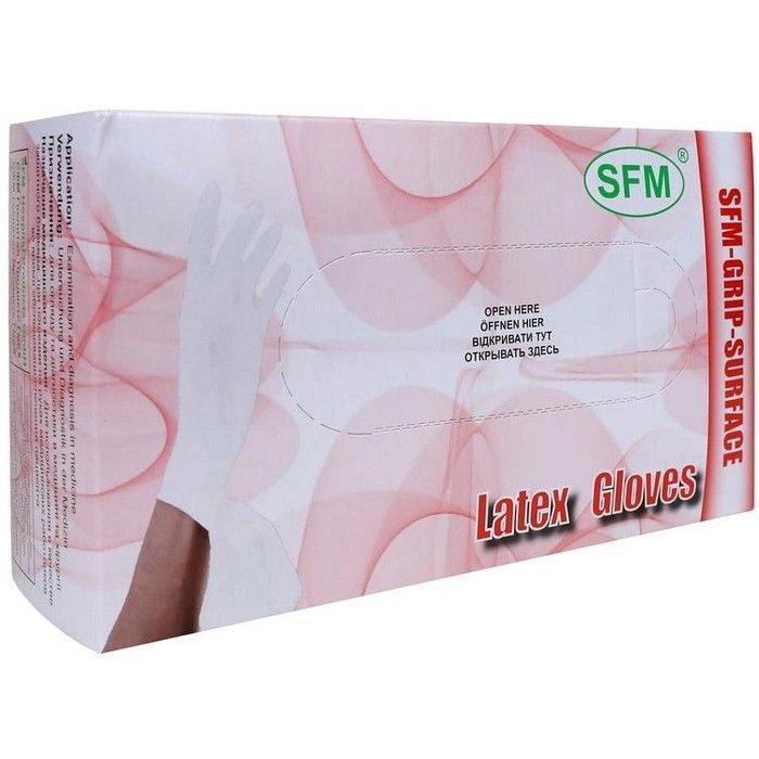 - Перчатки SFM смотровые латексные нестерильные неопудренные текстурированные.