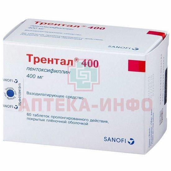 Внутрь, проглатывая целиком, во время или сразу после приема пищи, запивая достаточным количеством воды. Дозировка устанавливается врачом в соответствии с индивидуальными особенностями больного. Обычная доза 1 таблека препарата Трентал 400 2 или 3 раза в сутки. Максимальная суточная доза 1200 мг. У пациентов с нарушенной функцией почек (Cl креатинина ниже 30 мл/мин) дозировка может быть снижена до 12 таблетки в сутки. Уменьшение дозы, с учетом индивидуальной переносимости, необходимо у пациентов с тяжелым нарушением функции печени. Лечение может быть начато малыми дозами у пациентов с низким АД, а также у лиц, находящихся в группе риска ввиду возможного снижения АД (пациенты с тяжелой формой ИБС или гемодинамически значимым стенозом сосудов головного мозга). В этих случаях доза может быть увеличена только постепенно.