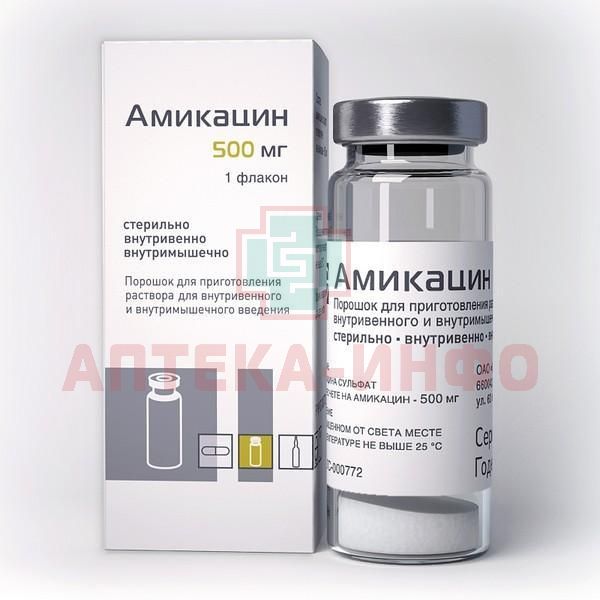 Амикацин фл.(пор. д/приг. р-ра д/в/в и в/м введ.) 500мг №1 пач.карт. Красфарма
