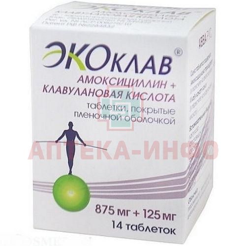 Экоклав таб. п/пл. об. 875мг+125мг №14 (банка) АВВА РУС/Россия