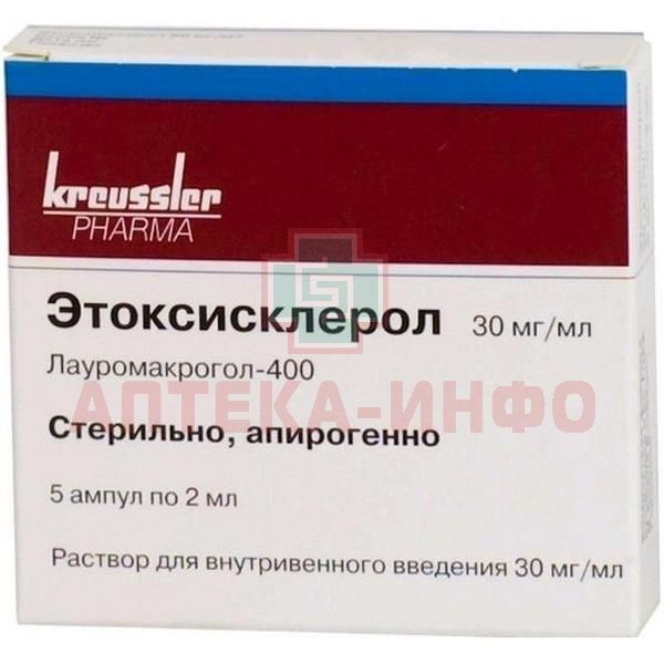 Этоксисклерол вводят строго в/в при горизонтальном или приподнятом на 30-45 положении ноги.