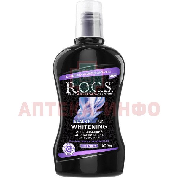 Ополаскиватель полости рта РОКС Отбеливающий Black Edition 400мл ЕвроКосМед/Россия