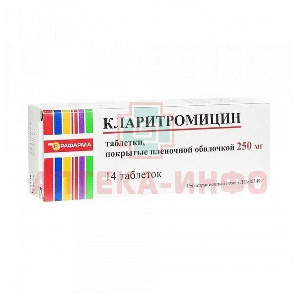 Кларитромицин таб. п/пл. об. 250мг №14 Рафарма