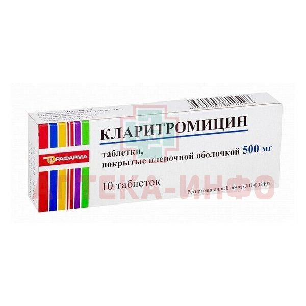 Кларитромицин таб. п/пл. об. 500мг №10 Рафарма/Россия