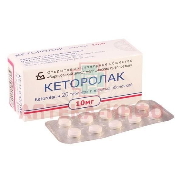 Кеторолак таб. п/пл. об. 10мг №20 Борисовский ЗМП/Беларусь