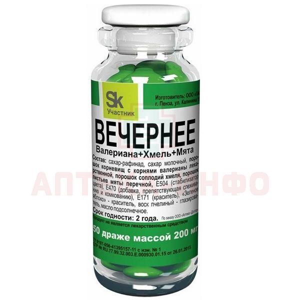 Вечернее (Валериана+Хмель+Мята) драже №50 Парафарм/Россия