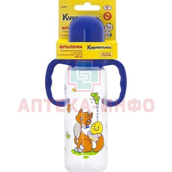 Бутылочка детская КУРНОСИКИ 11139 "Колобок" полипр. с силик. соской с ручками 250мл Мир детства-ПРОМ/Россия